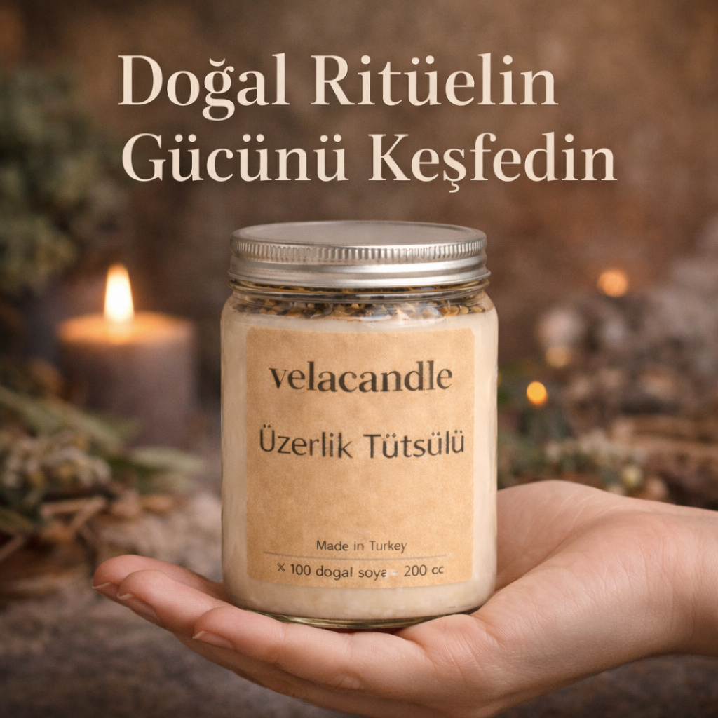 Velacandle Üzerlik & Ada Çayı Ritüel Mumu, sıradan mumların ötesinde bir deneyim sunar.